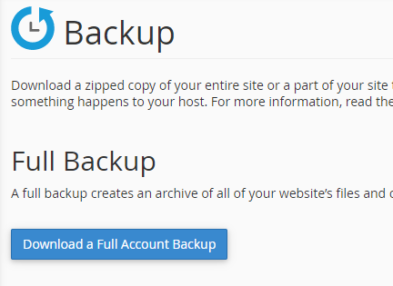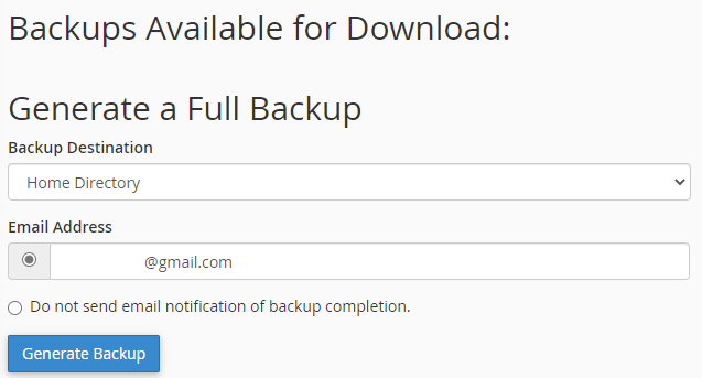 - Click Generate Backup. A confirmation message will appear. Click Go Back to return to the Download section of the interface.